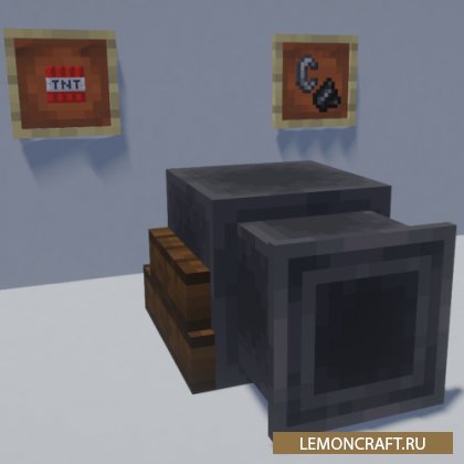 Мод на мощную пушку Cannon добавляет в игру новый вид орудия, массивную пушку, которая будет стрелять разрывными блоками.